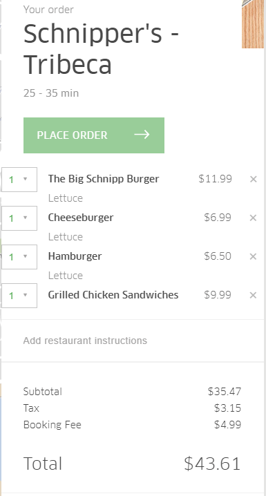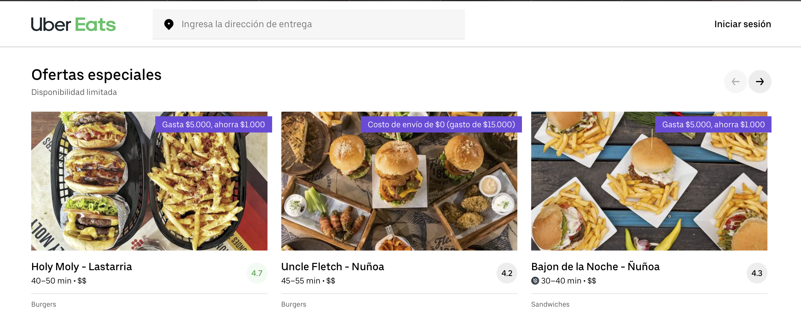 El valor del pedido y el precio de entrega son visibles al finalizar la compra. Al mismo tiempo, en Uber, el costo de envío generalmente se fija para la región seleccionada. Y no depende del monto del pedido. No hay un valor mínimo de pedido.