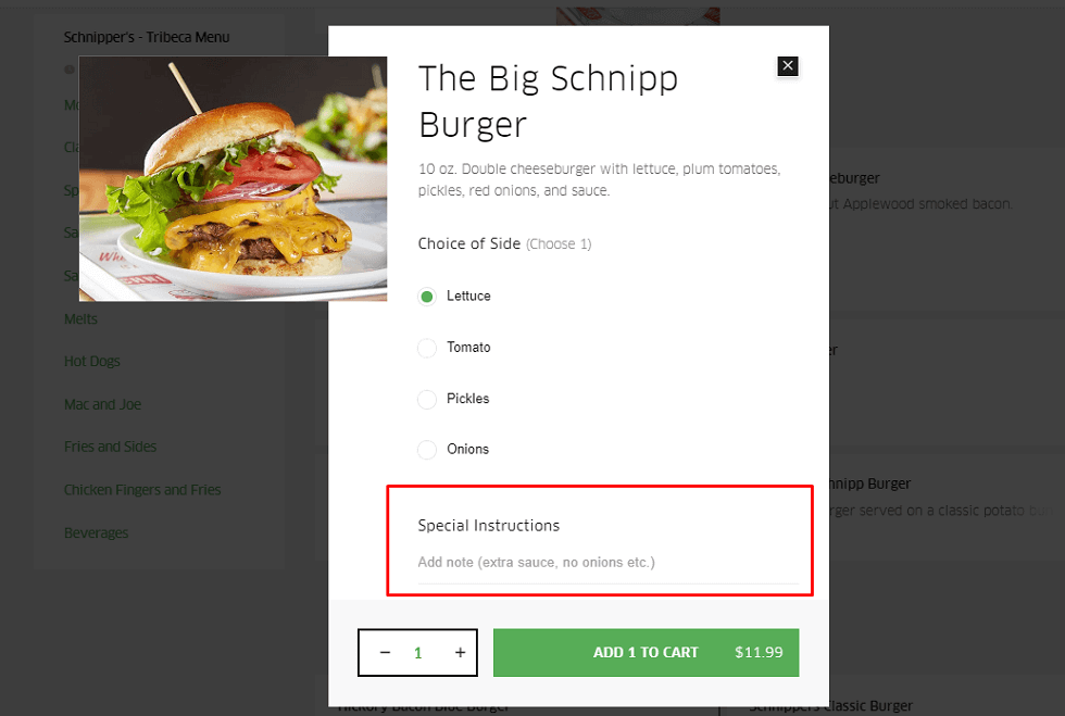 Hay un campo de nota en la ficha del plato donde puede dejar información importante y deseos. Esto evita situaciones desagradables. Por ejemplo, cuando un producto aparece en un plato que es inaceptable para el cliente debido a una alergia o dieta.